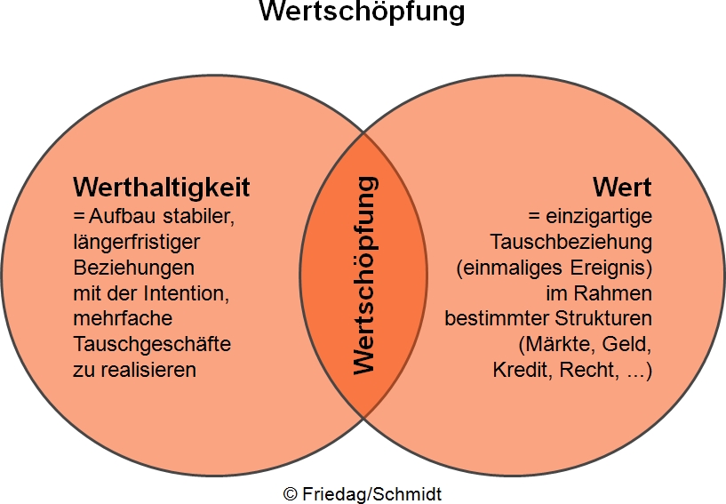 Walter Schmidt, ICV-Vorstand, Strategieberater und Autor mehrerer Bücher über Strategisches Management, sieht den Ansatzpunkt in der Funktion der Reputation als „Scharnier“ zwischen der Kommunikation und der Strategie bzw. der Rechnungslegung eines Unternehmens. Er unterscheidet in diesem Zusammenhang drei Begriffe: „Wert“ ist das Ergebnis situativer Tauschereignisse, „Werthaltigkeit“ resultiert aus Stakeholder-Beziehungen mit dem Ziel der Verstetigung solcher Tauschereignisse, während „Wertschöpfung“ die Schnittmenge aus Wert und Werthaltigkeit bildet.